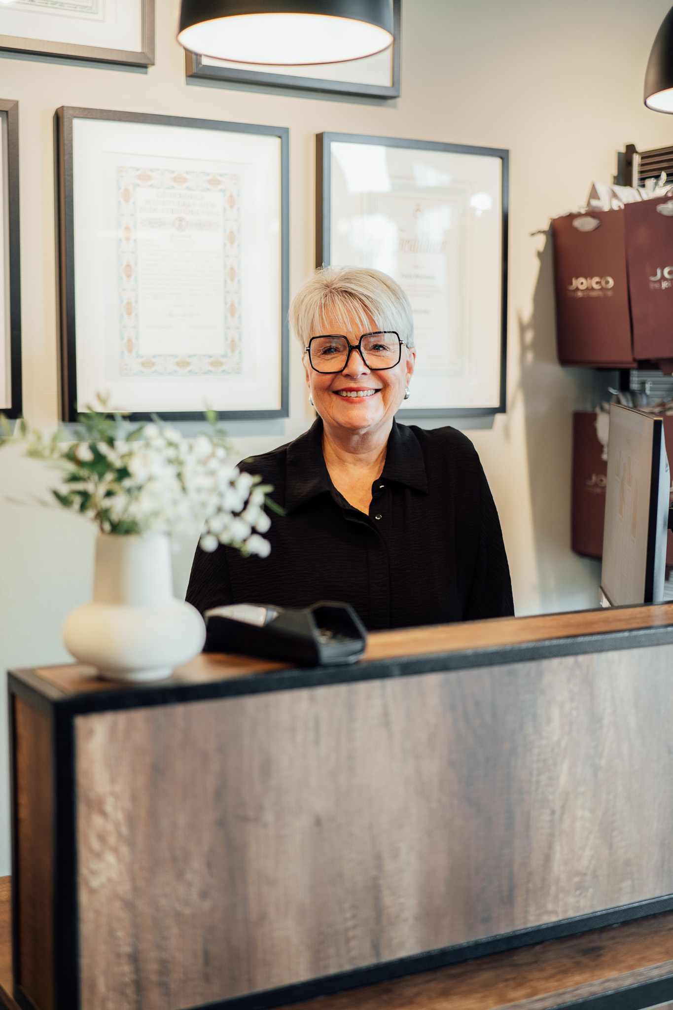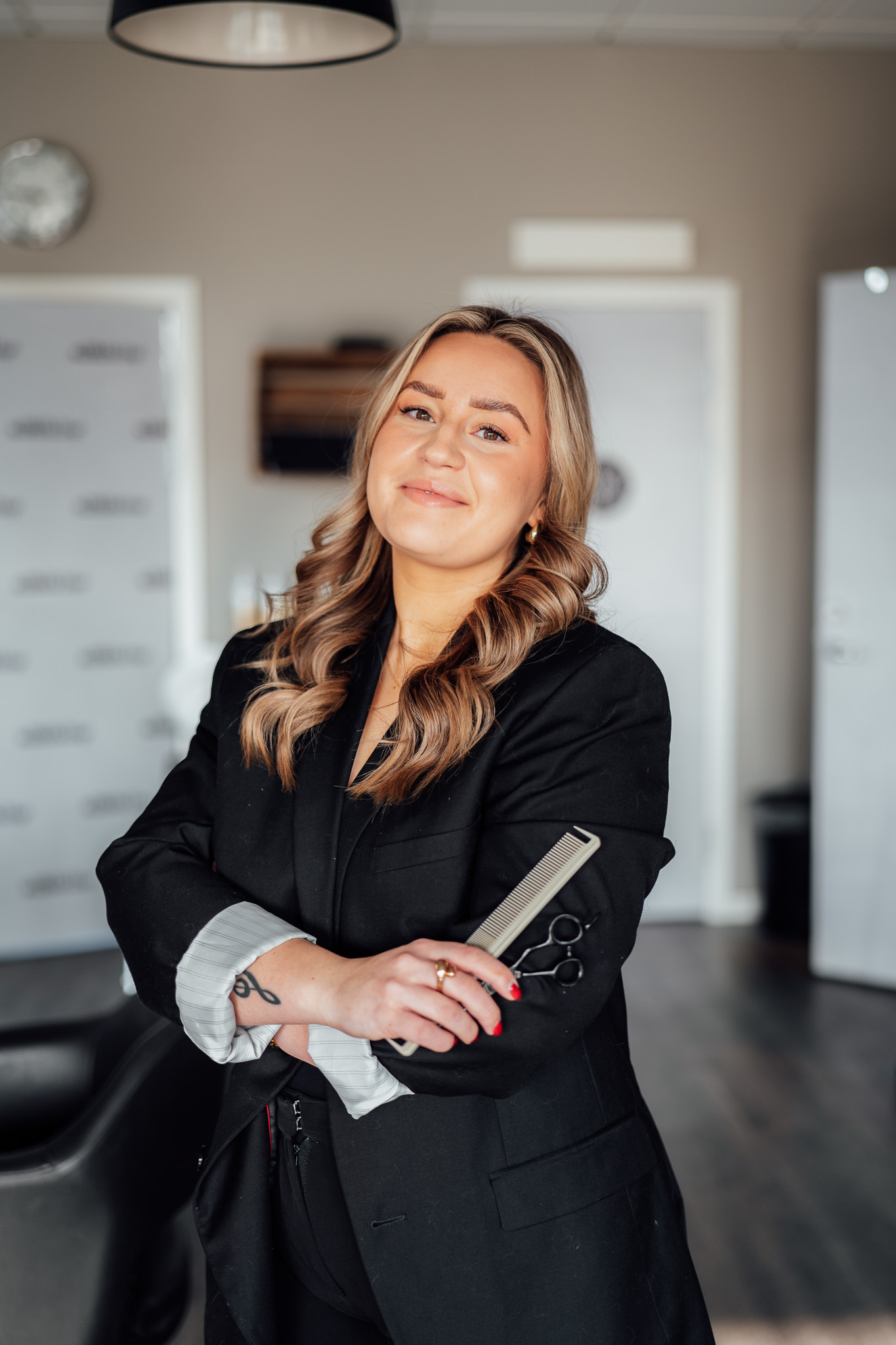 Emma är utbildad frisör med examen från Svenska Frisörskolan 2021 och gesällbrev sedan 2023.